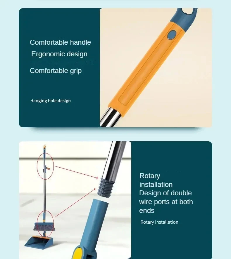 Keep your home spotless with this versatile, foldable broom and dustpan set. Designed for comfort and efficiency, it features a 180° rotating broom head, adjustable handle, and space-saving foldable design – perfect for cleaning hair, dust, and small debris in narrow corners and under furniture.